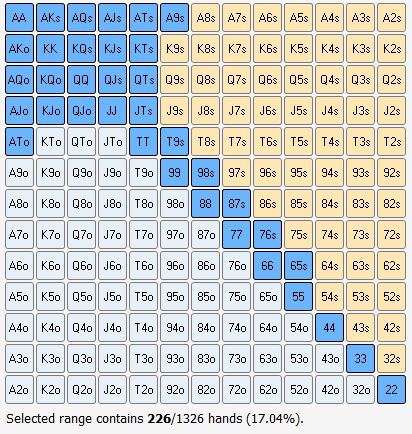 当然,这取决于你的能力和你的对手的能力,但如果你看一下你的扑克数据库,你可能会注意到大约20-25%的手会产生大约80%的积极结果。这在直觉上是有道理的,因为前20%的手牌往往是容易玩的,如大A、对子和同花连张。