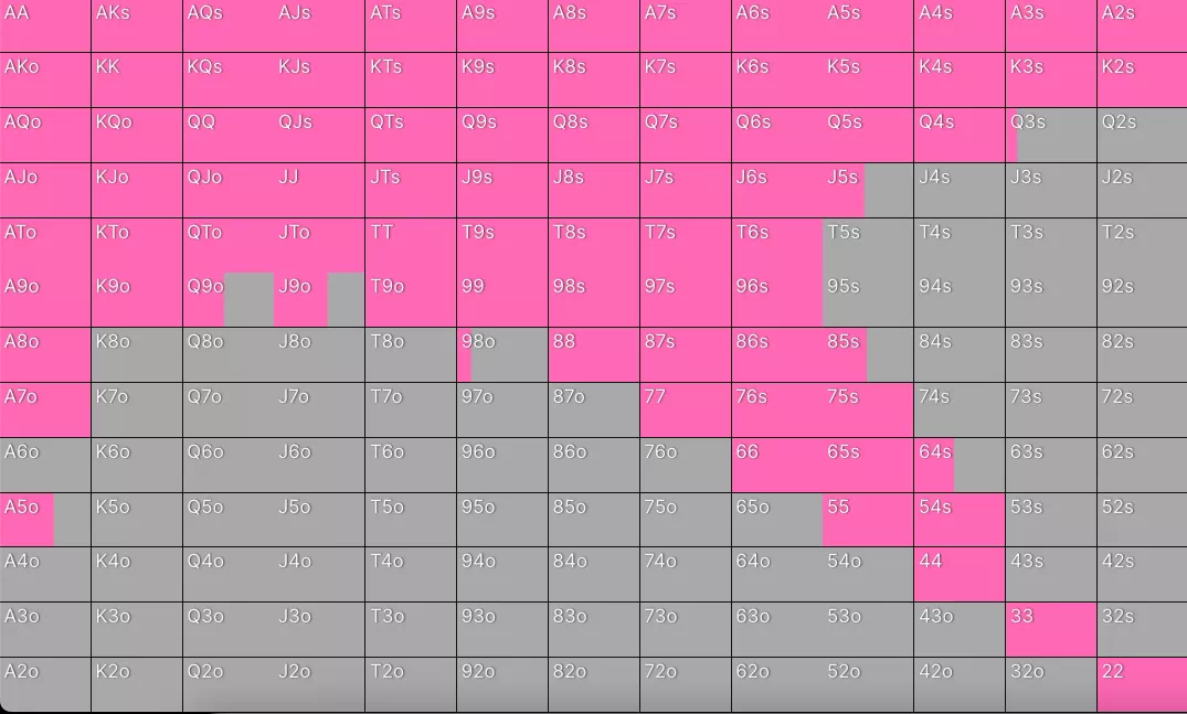 这是CO位的开局范围,有效记分牌40BB。
