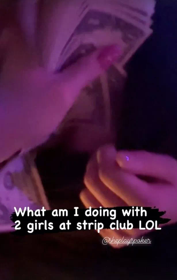 Sashimi前脚刚跟中国妹子Tao在网络上互呛,后脚就跟着好闺蜜去脱衣舞俱乐部嗨翻天。这位闺蜜叫Courtney Webb,是一位来自澳大利亚的扑克爱好者。Sashimi用限时动态的方式在社交网络上和超过3万名粉丝分享了当晚“美好的回忆”,甚至还在某个小视频上配文“我欲火焚身”(I’m horny)。