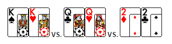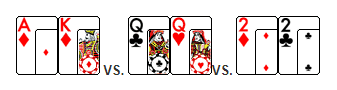 另一方面,持有口袋Q的玩家没有兴趣减少参与者的数量,即使减少十分之几,他们在三人池中的表现也比单挑时好。显然,如果单挑对手是口袋2,而不是KK,情况会有所不同……
