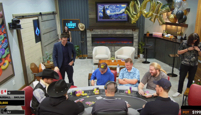 翻牌前,Airball跟注了Cates的2,000记分牌加注。
