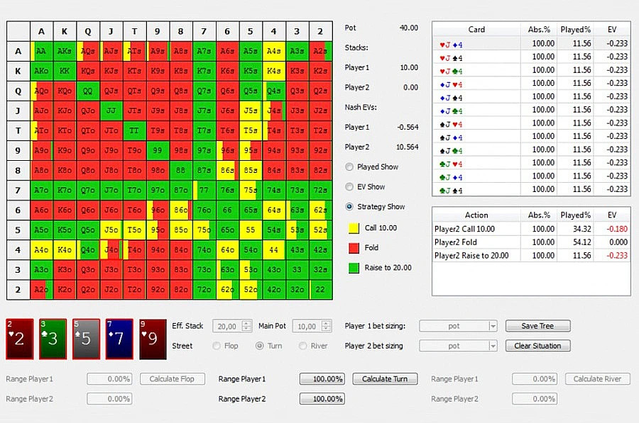从理论上讲,扑克解算器是计算任何扑克情况的解决方案的计算机程序。几年前,能够在您的家用计算机上运行如此强大的软件是不可想象的 – 凭借现代 PC 的计算能力,情况已不再如此。解算器提供的解决方案非常接近 博弈论最优 (GTO) 玩法。在理想的世界中,这款软件将使您的游戏成为坚不可摧的堡垒。