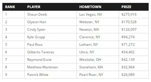 他在本周的Turning Stone主赛事中战胜了1070名选手获得了275,916美元奖金。
