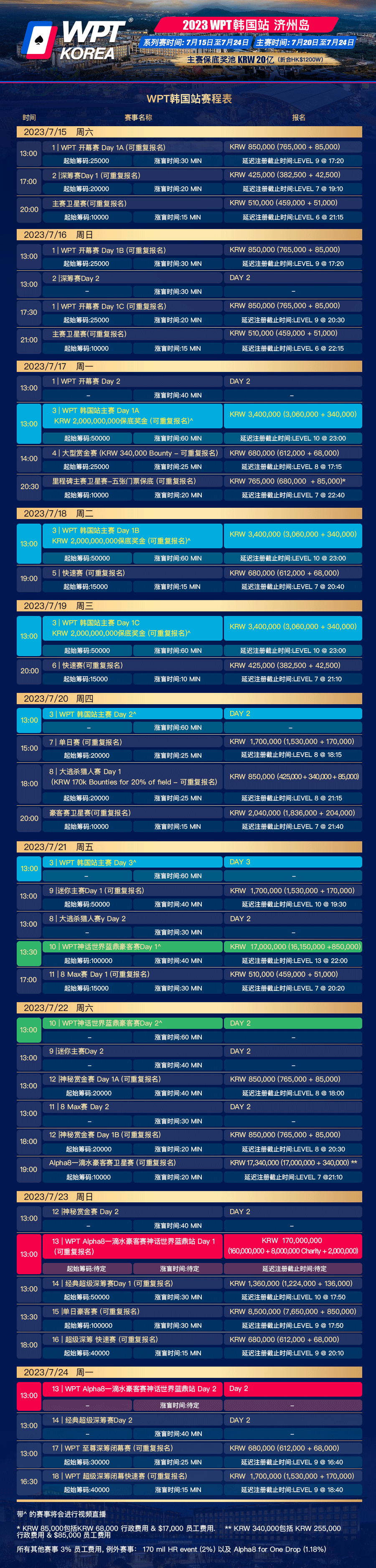 WPT韩国站济州岛中文赛程表