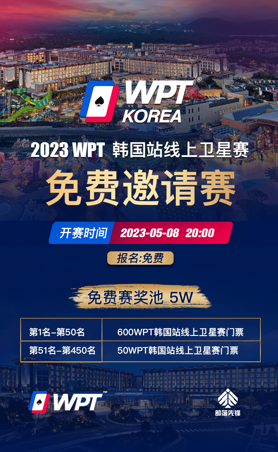 5月8日晚20点,WPT韩国站线上卫星赛免费邀请赛即将打响,有机会向20亿韩元保底的WPT韩国站主赛门票发起冲击!