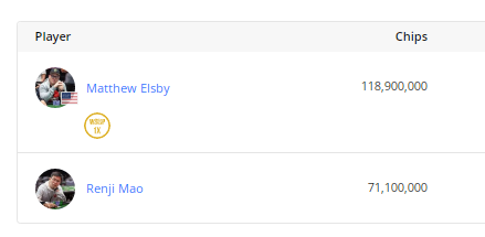 Qiwen Chen则是被卷入了一个三人彩池,最终被淘汰在第六名,奖金为81,666美元。