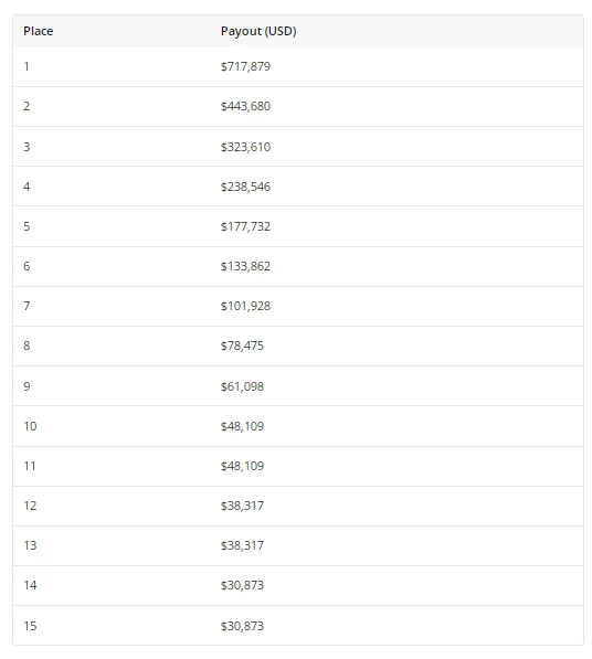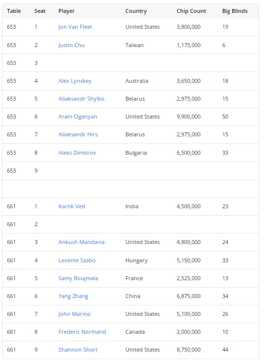 比赛目前只剩下15名玩家,只有一位前金手链得主仍在竞争中。