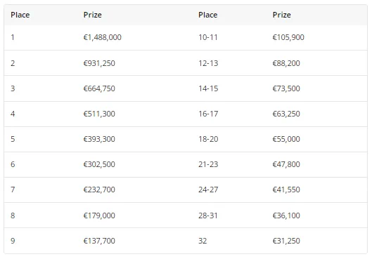 Wiciak在现场锦标赛中的收入只有区区101,000美元,其中包括在今年世界扑克锦标赛主赛事中获得的第344名,奖金44,700美元。Wiciak现在处于有利位置,不仅能获得他迄今为止最大一笔奖金,还能冲击1,488,000欧元的第一名奖金,该奖金是10,282,000 欧元奖池(由 2,120 名参赛者产生,是 EPT 主赛事的第二大奖池)中的最大部分。