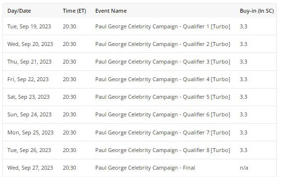 保罗-乔治名人赛将于9月19日至27日举行,包括一系列预选赛,全球扑克玩家将有机会与乔治对战。