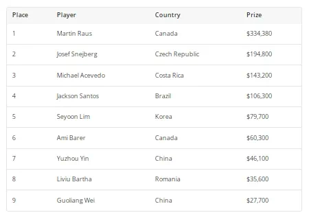 2023年世界扑克大赛天堂赛第四场比赛:1000美元迷你主赛的最后一天在美丽的巴哈马亚特兰蒂斯度假村落下帷幕,经过紧张激烈的一天角逐,Martin Raus摘得WSOP金手链和价值334,380美元的第一名奖金。