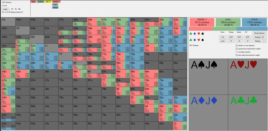虽说如此,如果我们相信PokerSnowie软件,那么在多人底池游戏时采用一种极具防守性的策略似乎是最好的。