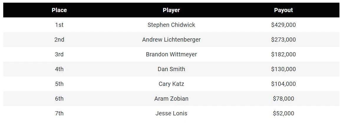 Chidwick赢得了最后一场巡回赛–8号赛事25,200美元无限注德州扑克,继续巩固了他作为扑克史上伟大人物之一的地位。