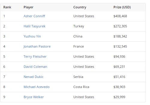中国选手尹宇周在本场比赛发挥出色,最终取得了第三名的好成绩,奖金为188,342美元。