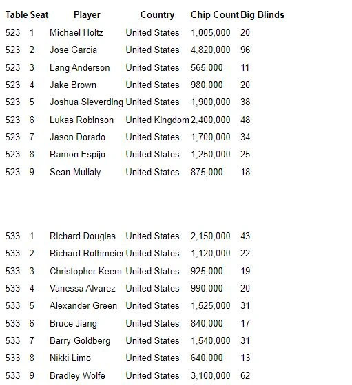 自从 Nikki Limo 被淘汰以来,已经过了一个级别,Vanessa Alvarez从中间位置用K♣T♣投入了400,000记分牌,Bradley Wolfe用K♠8♣跟注。