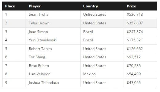 他刚刚击败了259名选手,夺得了10,000美元PLO8锦标赛冠军,奖金 536,713 美元。