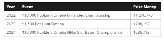 令人惊讶的是,这是他连续三年获得的第三条WSOP手链(当中两条来自同一项赛事)。