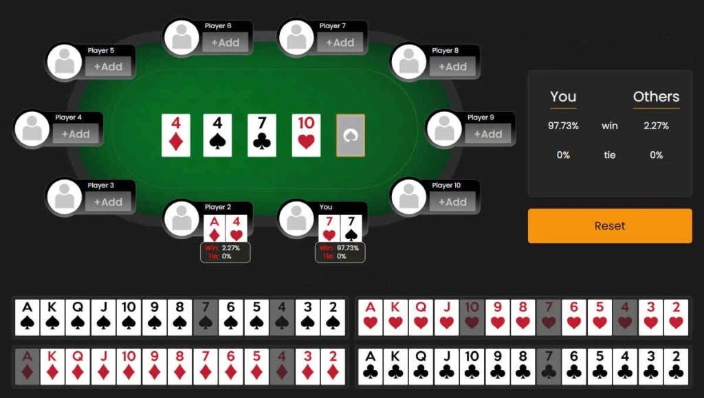 唯一需要注意的是,河牌出现 K 意味着其中一些牌(例如口袋对 J 和 Q)不再是高对,而口袋对 K 则可以成为大对。