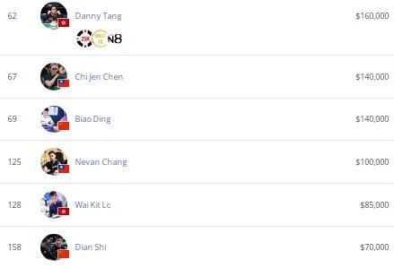 而Danny Tang、丁彪和Dian Shi等选手则退出了金手链的竞争。