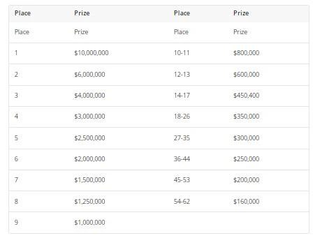 随着六位数奖金的解锁,今天已经达到了一个重要的里程碑。排名前125位的选手都获得了至少10万美元的奖金,而仍在竞争的59位选手已经将保底奖金提高到了16万美元。在接下来的几天里,这一数字将上升到百万美元。
