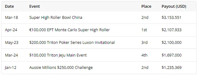 附:Patrik Antonius前五大奖金