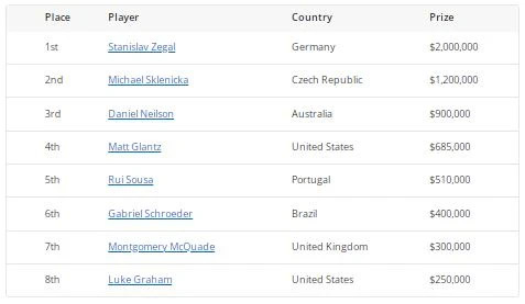 去年12月,线上预选赛选手 Stanislav Zegal在WSOP天堂主赛事中赢得200万美元奖金。