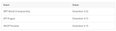 今年冬天,玩家们将再次不得不在全球扑克赛程表上的三项高规格赛事中做出选择。