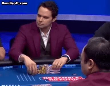 这次Mike想了想,然后过牌。Keating也考虑了一会儿,选择下注$22,000 。Mike似乎有点困惑,但还是决定跟注。