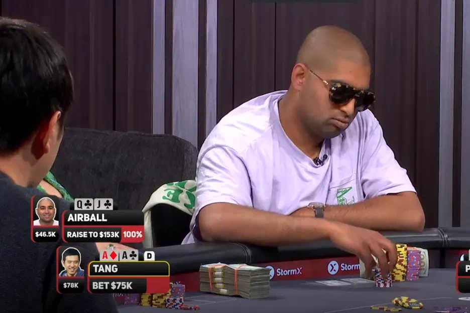 Airball和Tang对大底池或高额扑克并不陌生,但他们却是本赛季的首次亮相,比赛以单挑底池超过43.1万美元而达到高潮。