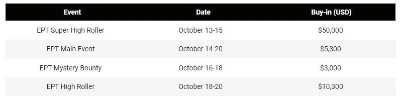 除了扑克桌上的紧张刺激,主办方还将提供一系列丰富的场外活动。一周的亮点是玩家派对,将于10月14日星期一盛大开启,但除此之外,还有许多其他激动人心的活动供你选择,确保你在牌桌之外也乐趣无穷。
