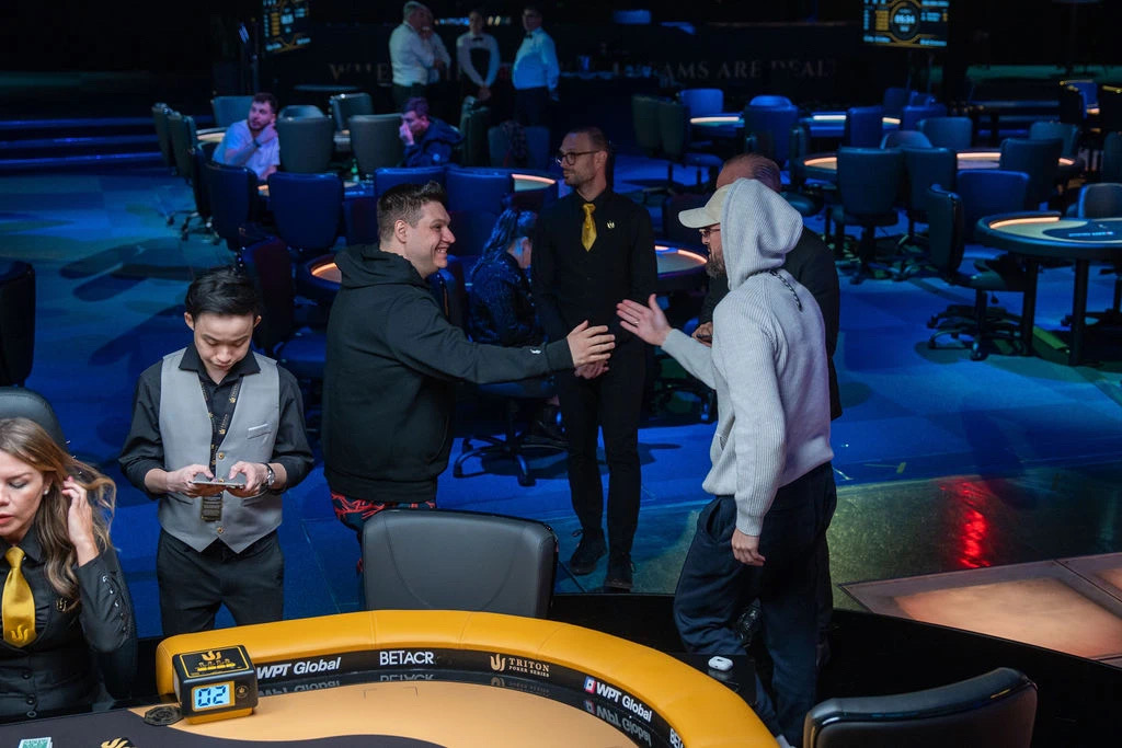 随着选手数量逐渐减少,场上平均记分牌为16BB,Yaroshevskyy以30BB的优势领跑。Alex Theologis在低筹码状态下成功翻倍,而Aleks Ponakovs在全下与弃牌间游走,最终获得第五名。Leon Sturm随后出局,以JQ对上Greenwood的AK获得第六名奖金223,200美元。接下来,Aleks Ponakovs、Luc Greenwood和Dominykas Mikolaitis相继离场,为Yaroshevskyy和Theologis的单挑局铺平了道路。
