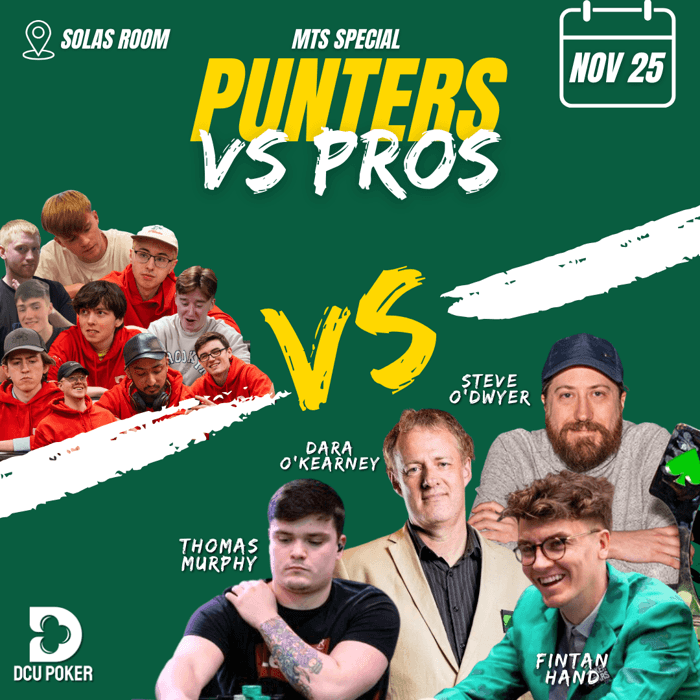 这一幕就在O’Dwyer与PokerStars大使Fintan Hand、Dara O’Kearney和Thomas Murphy一同加入都柏林城市大学(DCU)扑克社团,参与了一场特别的Punters vs. Pros锦标赛时上演了。