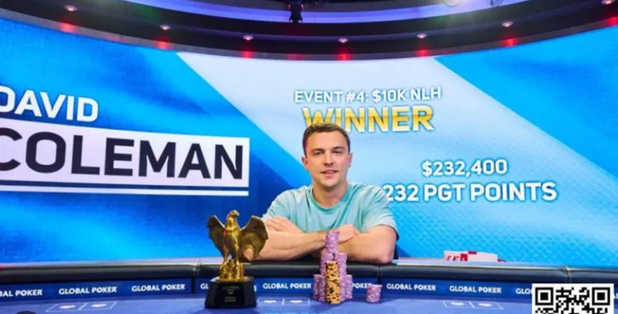 尽管David Coleman在十多年的高水平比赛中积累了数百万的收入和数次险胜,但进入2024年后,他仍未获得过一座现场锦标赛奖杯。这位31岁扑克职业选手在2024年年底终于取得了5次符合POY标准的胜利,彻底结束了他的冠军荒。