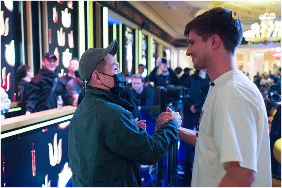 赛场边聚集了众多亚洲扑克界的顶级高手,Yong也在其中,作为热情的观战者之一,见证了Foo与精英选手的激战。他与两届Triton冠军Mario Mosböck的短码单挑对决堪称经典,双方多次完成翻倍,看似绝境时又一次次逆袭,战况激烈至极。