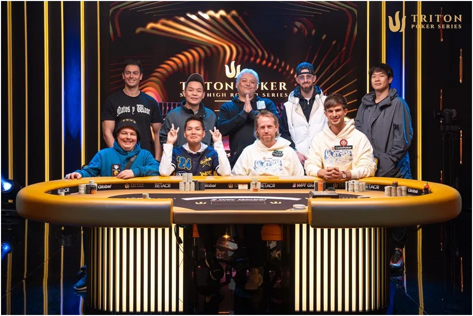 本场比赛中状态最火热的选手是比利时的Michael Gathy,他在济州首次亮相Triton便大放异彩。这位四届WSOP金手链得主在决赛桌合影时手握巨大领先码量。最终,九位选手带着以下记分牌进入最终对决: