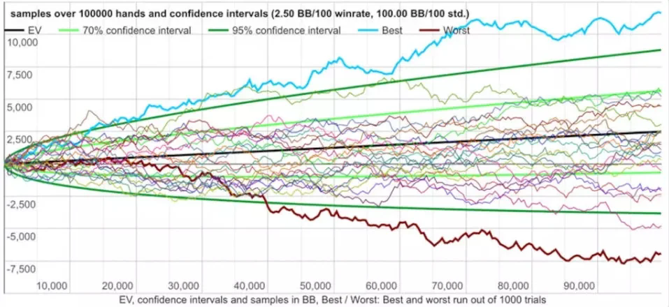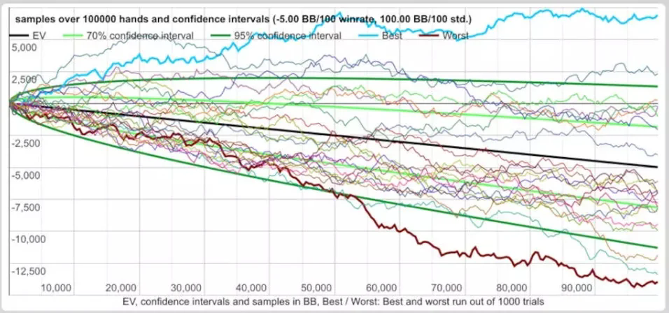 以下是一些波动图表,展示了运气在常规桌扑克中扮演的角色有多大: