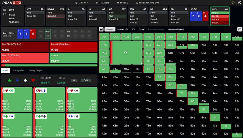 记住:KK的真正价值在于剥削更弱范围。下次获得这手牌时,请自信推入记分牌,让概率为您工作。毕竟,对手持有AA的概率仅有0.45%(9人桌),而他们用更弱牌跟注的频次足以补偿偶尔的bad beat。