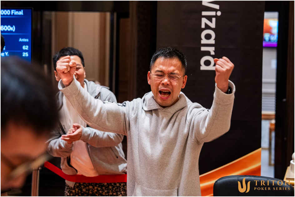 Tsang高声欢呼。胜负已定。拥抱与握手随之而来,Triton赛事墙再添一张新照。