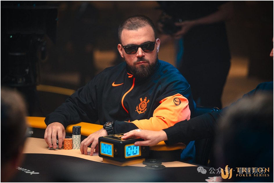 就在此时,Aleks Ponakovs找到了自己的节奏。他此前在Padilha和Fritz主导时保持低调,但在关键时刻找准了发力点。尽管他曾在河牌被王烨的进攻逼弃一手最佳牌,但随后便用A♠A♣成功从持A♥Q♦的王烨处完成翻倍。