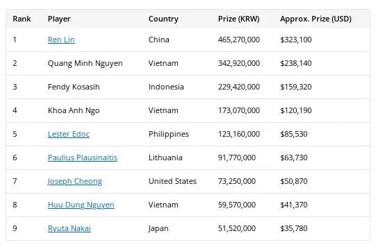 在淘汰多名对手的过程中,Lin 展现出了出色的牌技与运气。尤其是在与越南选手Quang Minh Nguyen 的单挑对决中,双方筹码几度易手,局面紧张。最终,Lin 在一手关键的河牌对决中胜出,建立起决定性优势,并很快在最后一手牌中锁定胜局,赢得了个人两天内的第二个冠军头衔。